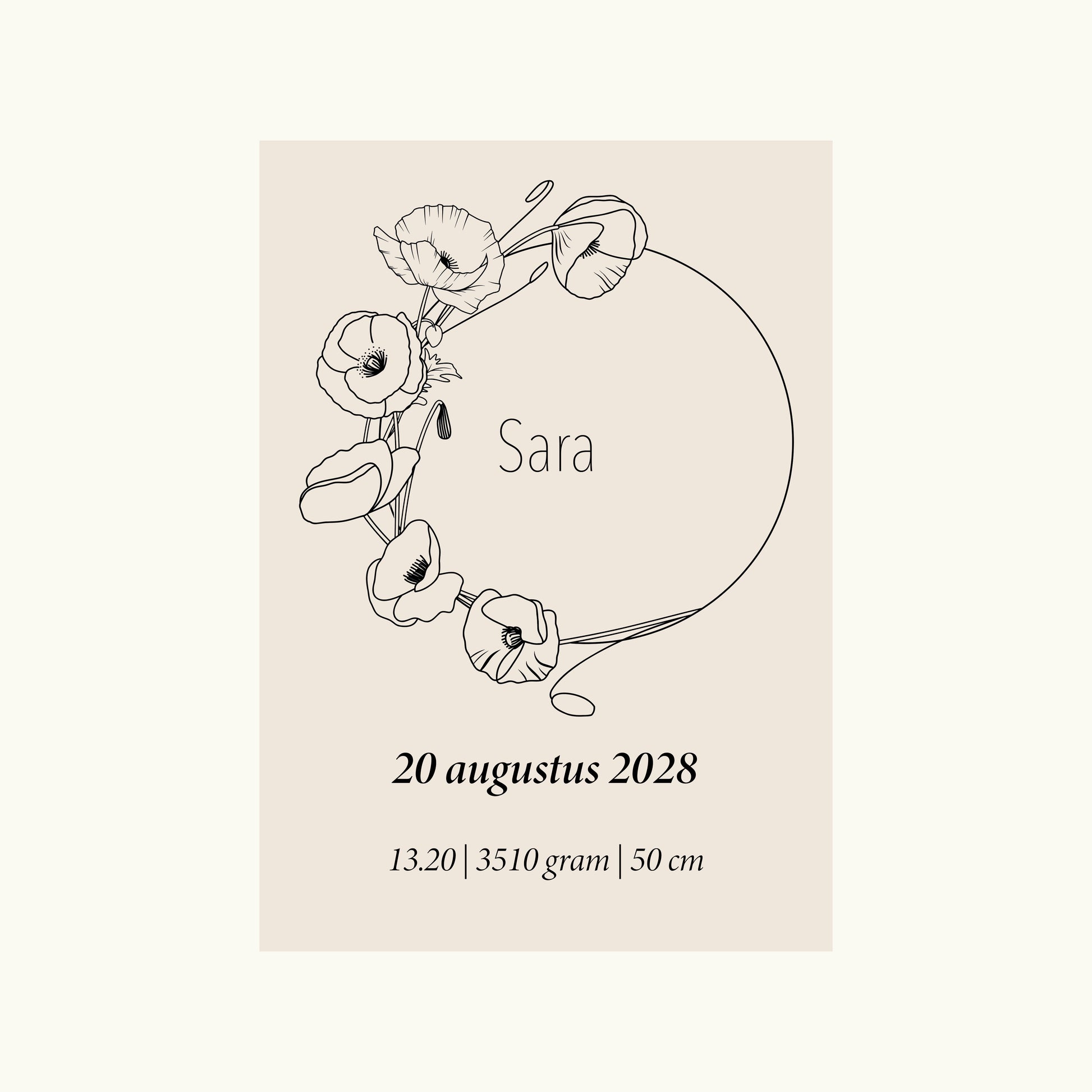 Geboorteposter Geboortebloem Augustus (Klaproos)
